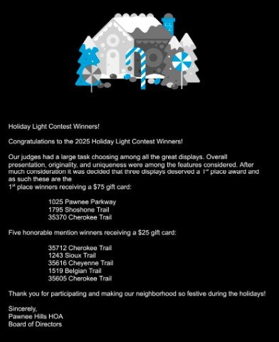 Pawnee Hills Holiday Light Contest Winners